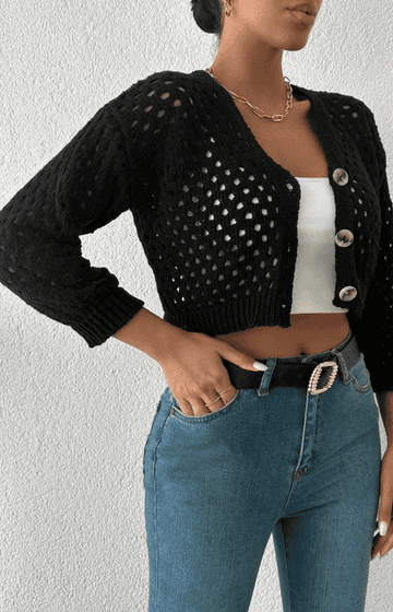 ÜÇ DÜĞMELİ AJURLU KISA TRİKO HIRKA